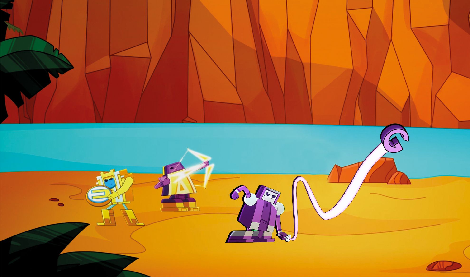 Il Pianeta Prime è la casa dei Letrabots: vivono qui dall’inizio dei tempi…e ci stanno proprio bene! Il Pianeta Prime ha panorami molto vari: dalla foresta, dove vivono i Letranimal Jurassik, all’area vulcanica. La base dei Letrabots si trova su una collinetta a picco sul bosco e da lì i Letrabots possono controllare tutto il pianeta: vedono il lago e anche il vulcano, un panorama niente male! L’elemento che rende spettacolare vivere sul pianeta Prime è il tramonto: ogni giorno i Letrabots assistono a tramonti mozzafiato, tutto l’ambiente si tinge di rosa e l’atmosfera diventa talmente piacevole da intenerire anche il più feroce dei Letranimal. Chissà che al tramonto, un giorno, Letrabots e Letranimal possano fare amicizia…di certo Byonic ci spera!